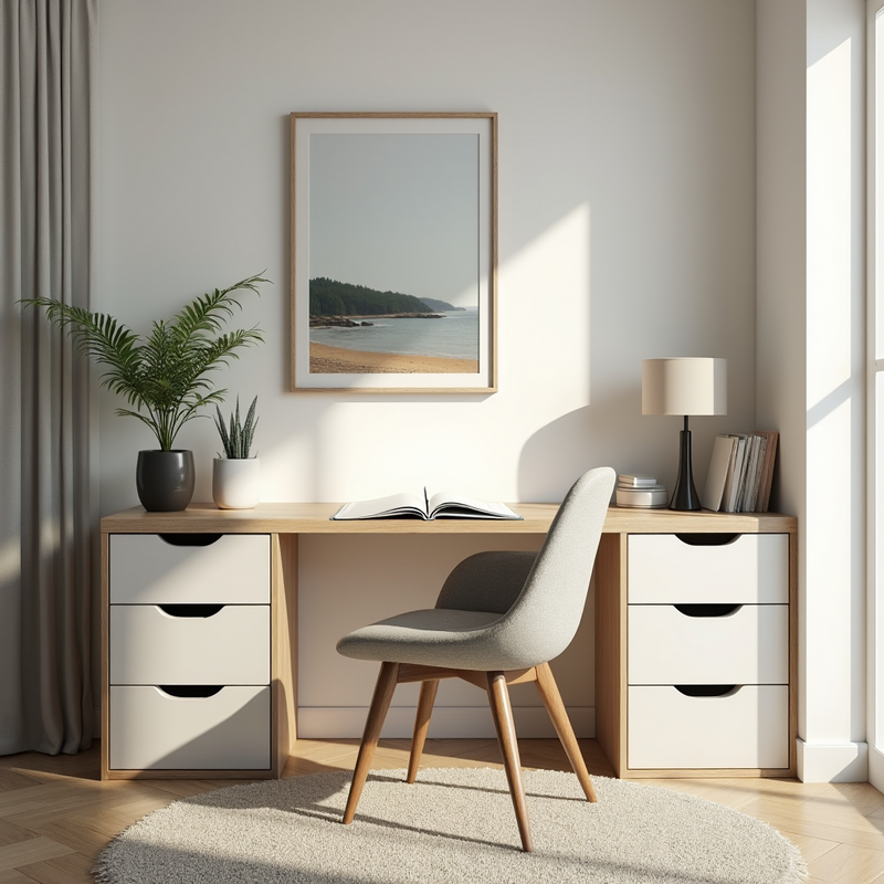 Sometimes, less really is more. For this project, we created a minimal home office that feels calm, focused, and intentionally styled—no clutter, no chaos. Clean lines, thoughtful storage, and just the right touches of personality make it a space that's both inspiring and productive. For a client, we incorporated subtle African-inspired elements like geometric patterns in the accent wall and a statement piece of African pottery to add warmth without overwhelming the minimalist aesthetic. Type A Decor believes your work-from-home setup should work for you—beautifully.
